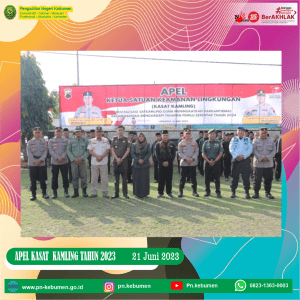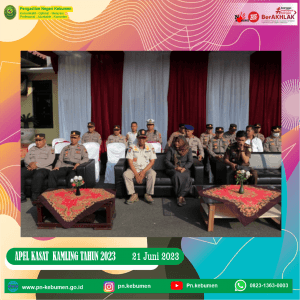Pada hari Rabu tanggal 21 Juni 2023 pukul 08.00 s.d selesai bertempat di Halaman Depan Kantor Polres Kebumen telah dilaksanakan APEL KASAT KAMLING TAHUN 2023 yang dipimpin oleh Kapolres Kebumen AKBP Burhanuddin, S.I.K, SH.MH.