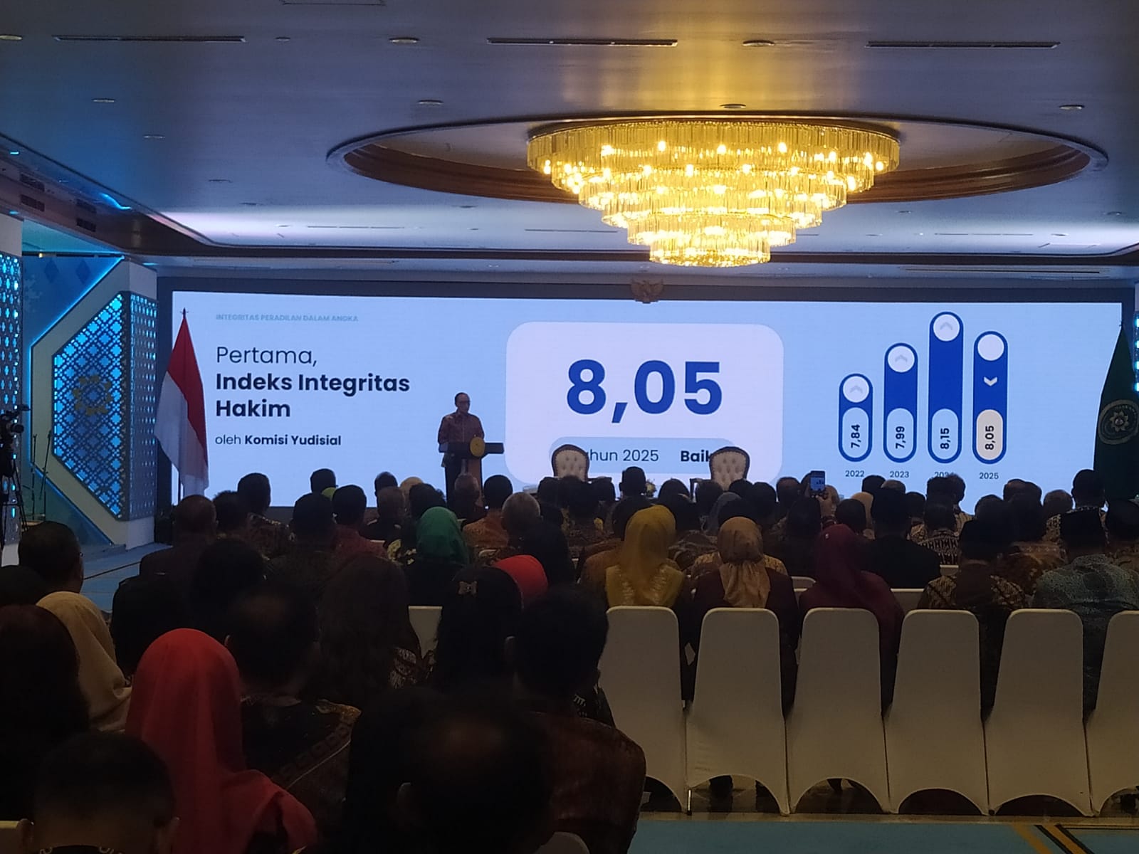 Dalam paparannya, ia menjelaskan sejumlah survei telah menunjukkan tren positif. Seperti Indeks Integritas Hakim yang dirilis Komisi Yudisial dengan nilai 8,05 dengan kategori baik pada tahun 2025.