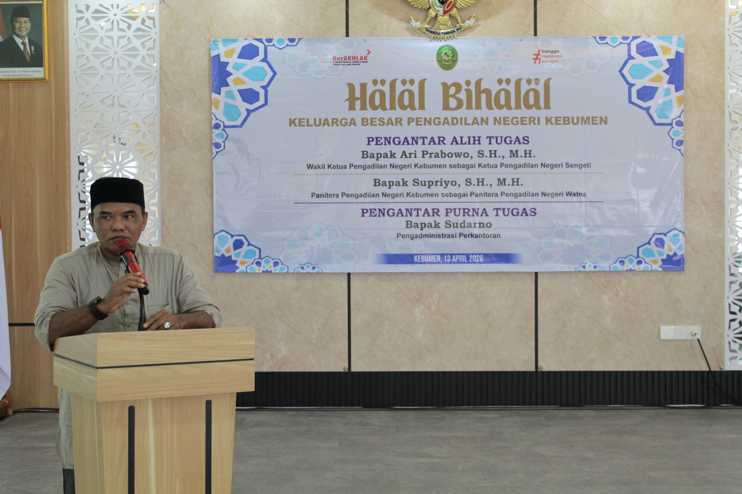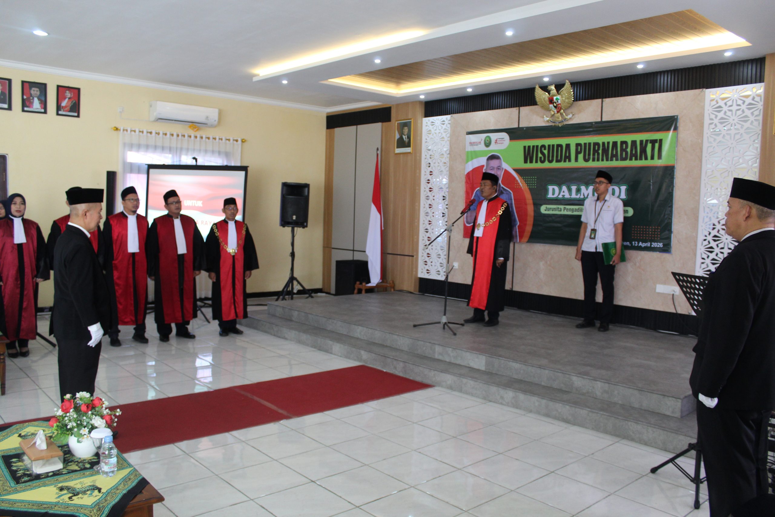 Senin, 13 April 2026. Bertempat di Ruang Aula Pengadilan Negeri Kebumen telah dilaksanakan wisuda purnabakti jurusita Pengadilan Negeri Kebumen yaitu Bapak Dalmudi. Acara dipimpin langsung oleh Ketua Pengadilan Negeri Kebumen Bapak Endi Nurindra Putra, S.H.,M.H.